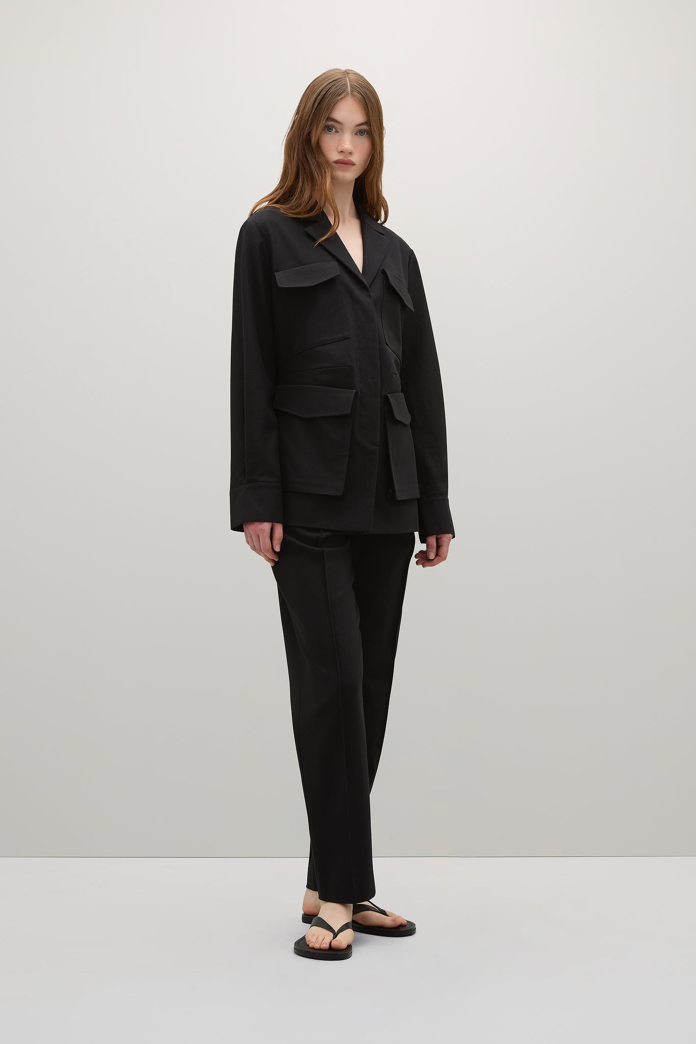 Crafted from a premium cotton twill, the Frank Jacket is a utilitarian style jacket featuring six pockets, four front facing and one in each side seam. Features also include a classic notch lapel, a hidden button placket and single button closure cuffs.